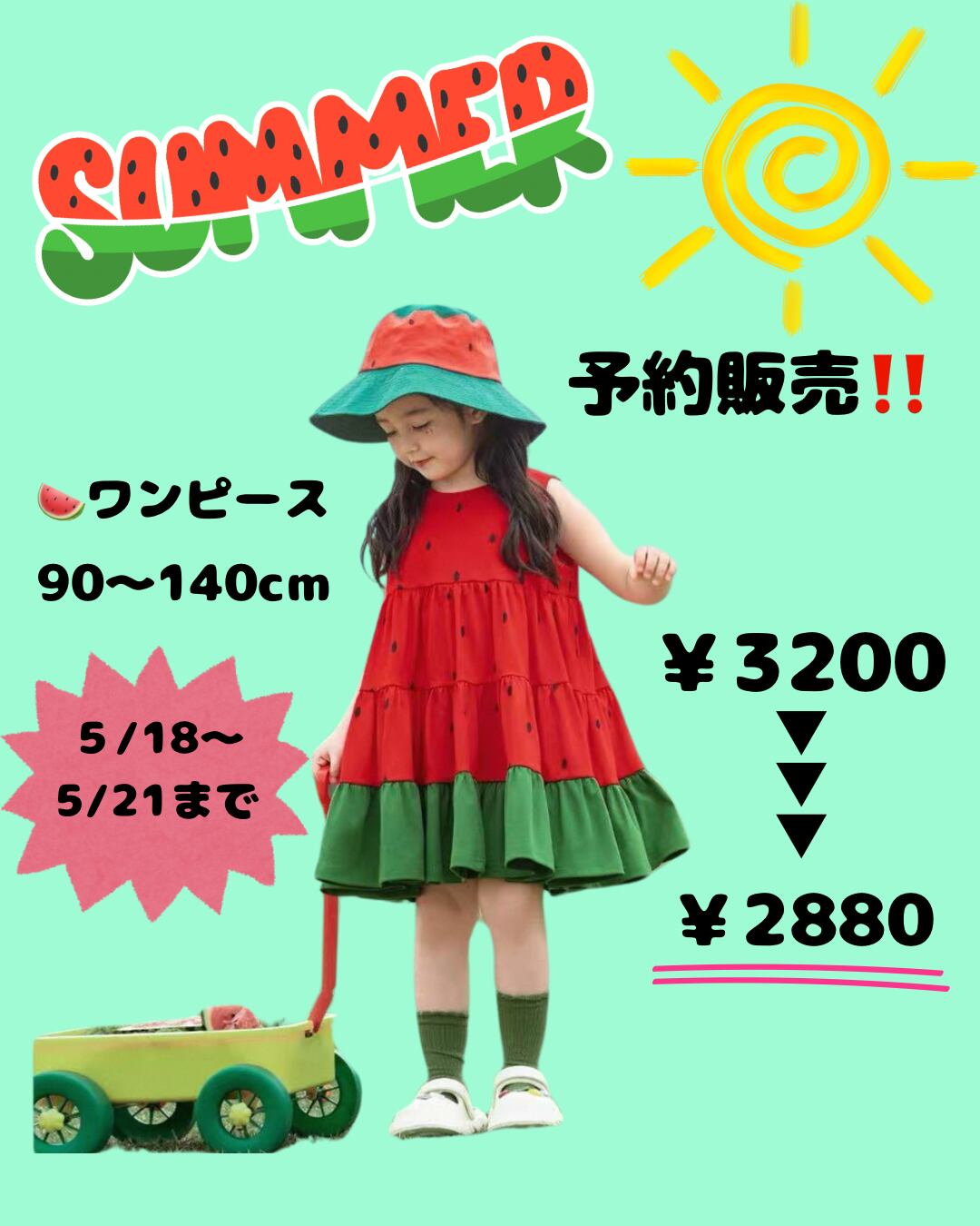 【予約販売】スイカワンピース!!