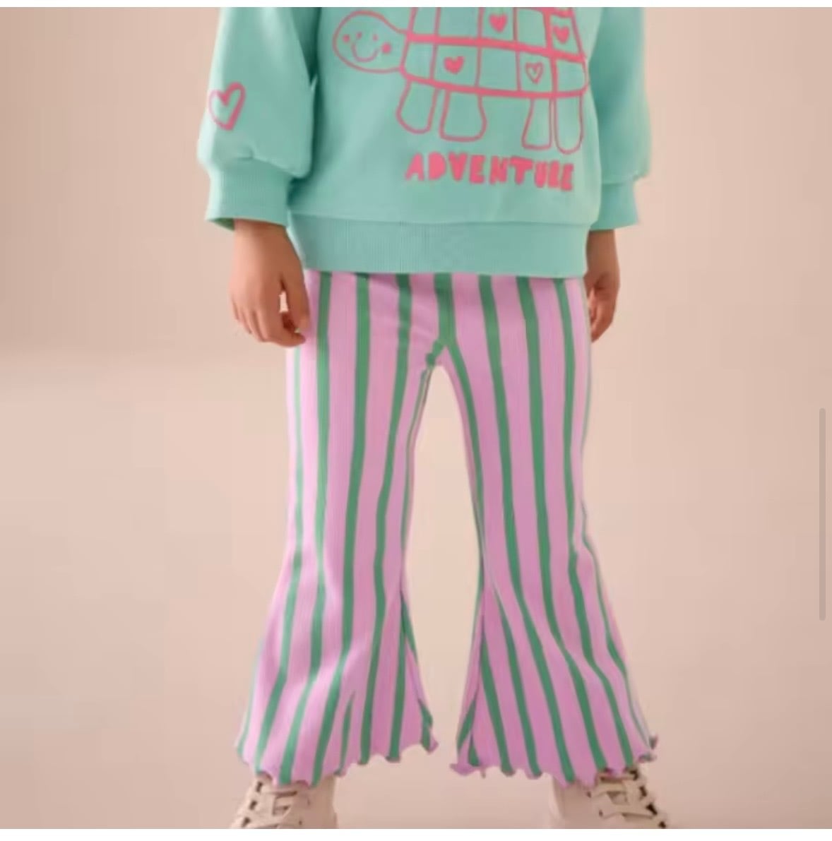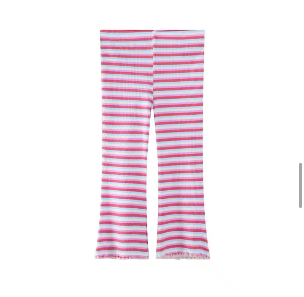 ボーダーとストライプの2パターンが楽しめるリブパンツです!裾のフリフリがとっても可愛くて、キュートなスタイルを引き立てます(。・ω・。)