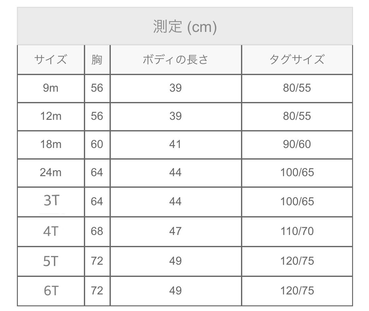 9m / 12m / 18m / 24m / 3T / 4T / 5T / 6T