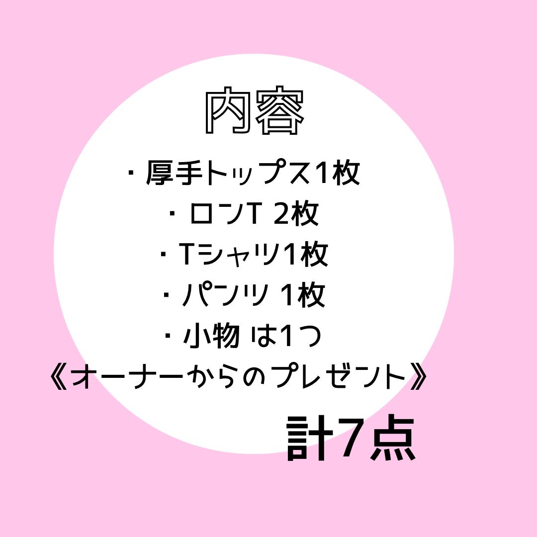 厚手トップス×1、ロンT×2、Tシャツ×1、ボトムス×1、小物×1 ➕オーナープレゼント1点★計7点
