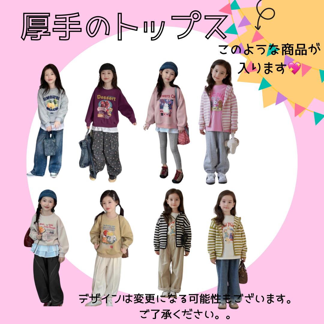 当店の福袋は、女の子向けに特別にセレクトされたアイテムが詰まっています!冬から春にかけて使える厚手トップスや、カジュアルなロンT、可愛いTシャツにぴったりなボトムス、そして小物まで、盛りだくさんの内容です。