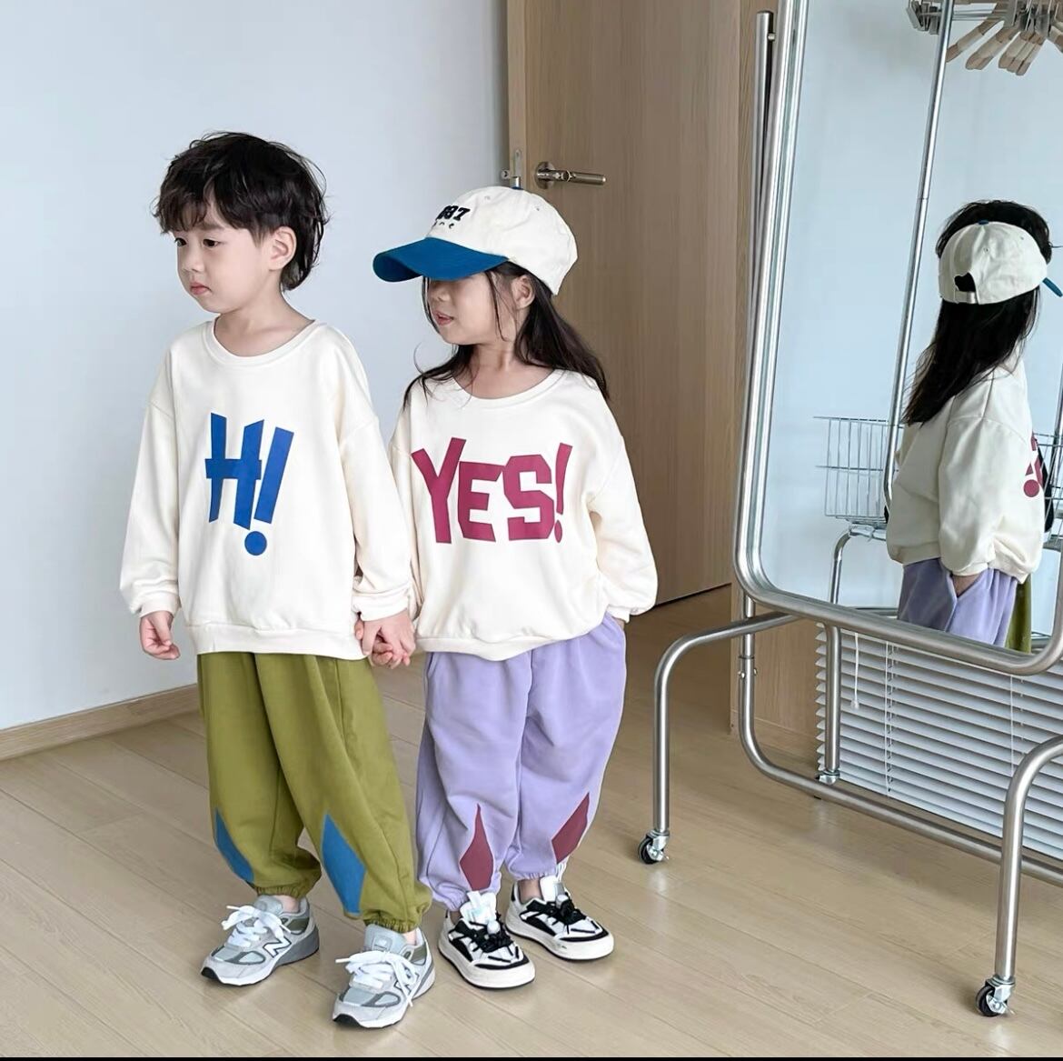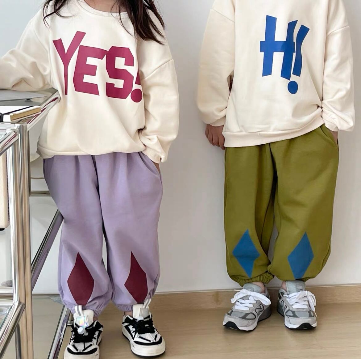 「Hi! Yes!セットアップ」は、楽しい気分を盛り上げるカラフルなデザインが魅力的なセットアップです!春夏にぴったりな軽やかな生地感で、カジュアルな日常から特別なお出かけまで幅広く活躍するアイテムです。サイズ展開は80cmから140cmまであり、お子様の成長に合わせてお選びいただけるのが嬉しいポイントです。